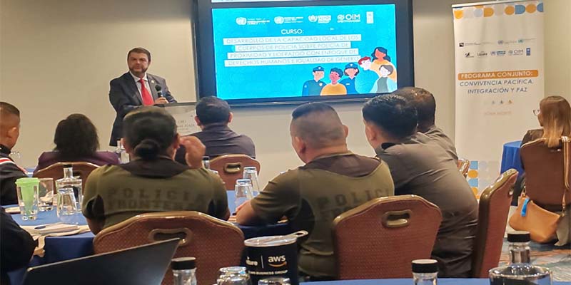 Un total de 30 oficiales, entre ellos Fuerza Pública, Fronteras y Migración que se destacan en zonas fronterizas se instruyen para fortalecer sus capacidades y destrezas, en relación al manejo y administración desde la seguridad en los flujos migratorios en frontera y la población local que los recibe, durante un curso de 2 días que inició este miércoles 12 y finaliza este jueves 13. Se imparte en San José.