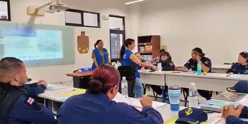 Oficiales del Servicio Nacional de Guardacostas recibieron una capacitación sobre trata de personas en mar y costas en la Academia Nacional de Policía (ANP) del Ministerio de Seguridad Pública.